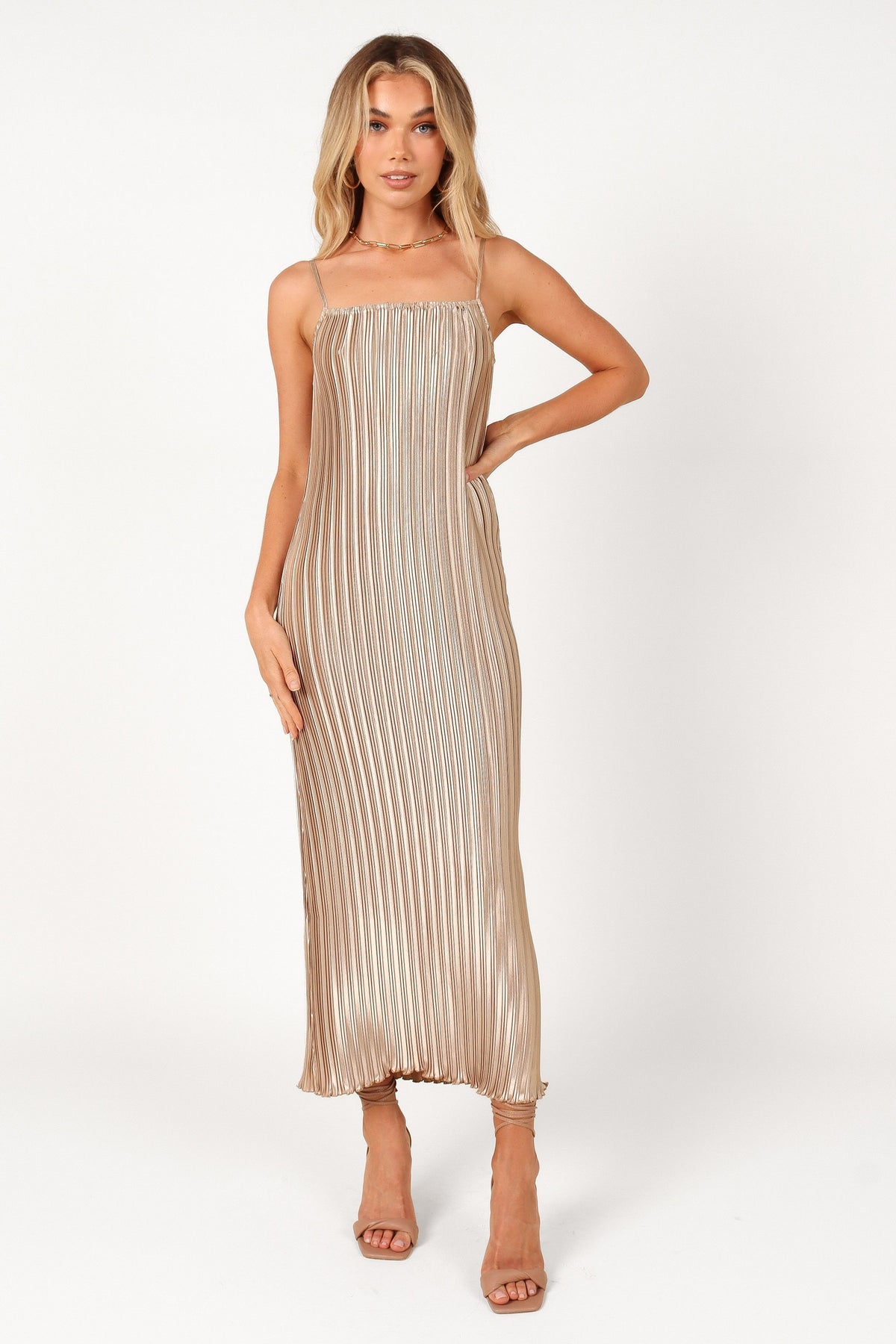 Til je stijl naar een hoger niveau met onze prachtige maxi-jurk. De strakke vierkante halslijn en dunne verstelbare bandjes zorgen voor een flatterende pasvorm, terwijl het plissé-materiaal een elegante twist toevoegt. Het zachte satijngevoel zorgt voor comfort, en de slim fit zorgt ervoor dat je er vanuit elke hoek chic uitziet.