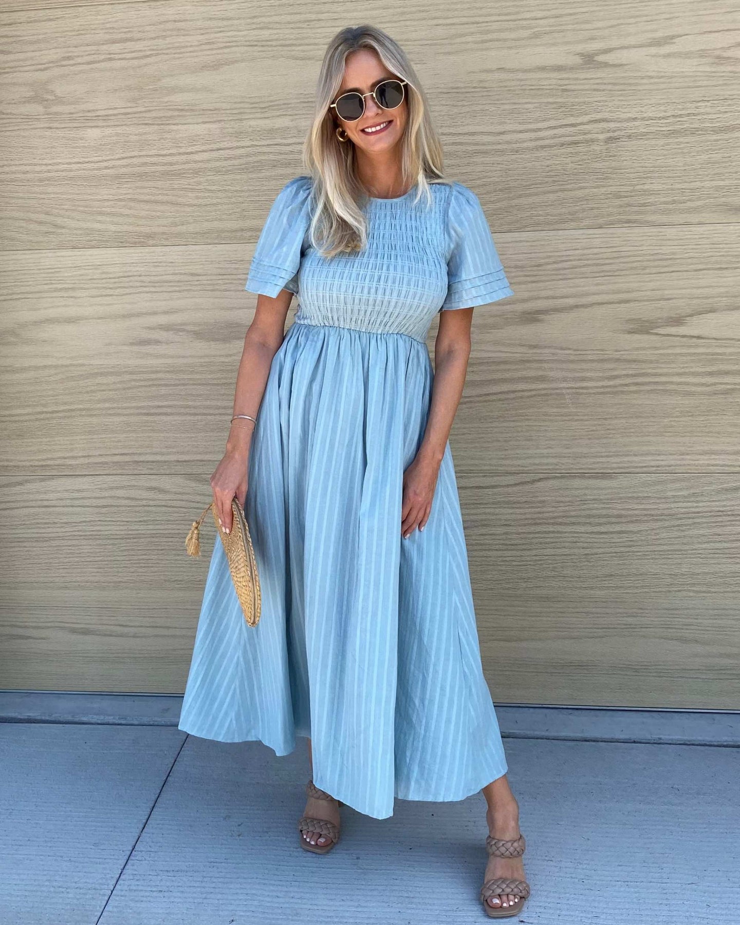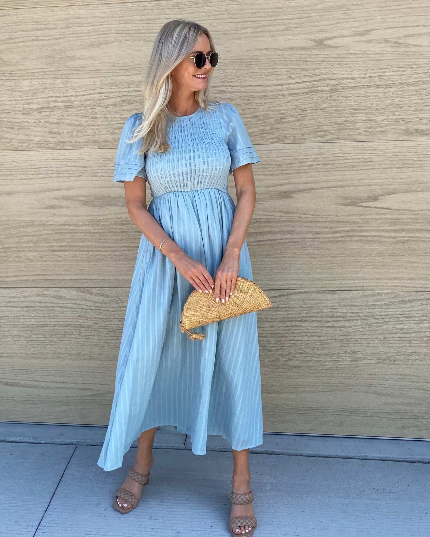 De Iolana Jurk combineert comfort en elegante stijl met een subtiele saliekleur en een flatterend midi-design. De ronde halslijn, korte mouwen en textuurpatroon op de borst zorgen voor een vrouwelijke en verfijnde uitstraling. De relaxte pasvorm maakt deze jurk geschikt voor zowel dagelijkse als formele gelegenheden, inclusief zwangerschap. Combineer met laarzen of hakken voor een complete, stijlvolle look.