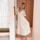 Dames | Korbela Jurk | Beige | V-Hals | Korte Mouwen | Midi Lengte