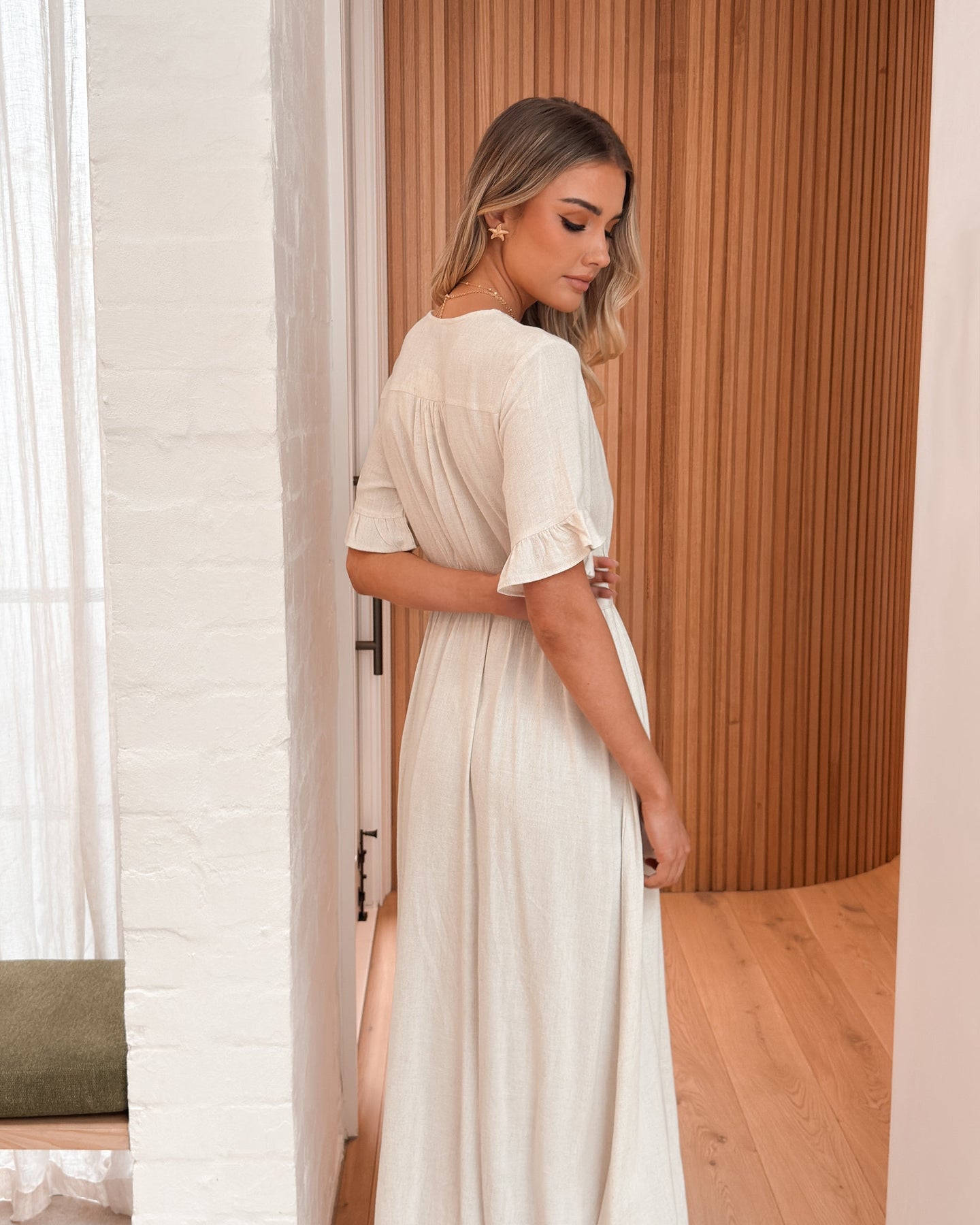 De Korbela Jurk biedt moeiteloze zomerse elegantie met een ontspannen pasvorm en ademend linnenmix. Het ontwerp met V-hals, knoopdetails aan de voorkant, korte mouwen met franje en midi-lengte combineert comfort met vrouwelijke details. Ideaal voor warme dagen, picknicks of casual uitjes, en geschikt voor zwangerschap. Combineer met sandaaltjes en een strooien tas voor een complete zomerse look.