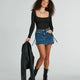 Je straalt altijd coole en zelfverzekerde vibes uit in deze denim mini rok terwijl je door de stad struint of met vrienden hangt! Ontworpen met een flatterende hoge taille en cargo-flapzakken met trekbandsluitingen die deze rok zowel functionaliteit als stijl geven. De bodycon-silhouet laat je rondingen zien terwijl de mini-lengte zoom een trendy afwerking toevoegt. Maak de look compleet met een lange mouw top, laarzen en een jas voor een onvergetelijke outfit die het waard is om op sociale media te delen!