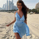 Voel je bijzonder in deze charmante cocktailjurk, die de perfecte keuze is voor zomerse feesten en avonduitjes. De jurk heeft een diepe V-hals die subtiel de vrouwelijke silhouet accentueert. De getailleerde taille benadrukt de figuur, terwijl de uitlopende rok zorgt voor een lichte en vrije beweging. Dunne spaghettibandjes geven de jurk een delicate uitstraling, terwijl ze tegelijkertijd comfort bieden. Deze jurk is een combinatie van elegantie en comfort, perfect voor verschillende gelegenheden.