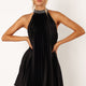 The Lizzy Halterneck Mini Dress in black is a trendy and fashionable dress perfect for any occasion. With its playful halterneck and pleated shift design, this mini dress is sure to make you stand out from the crowd.