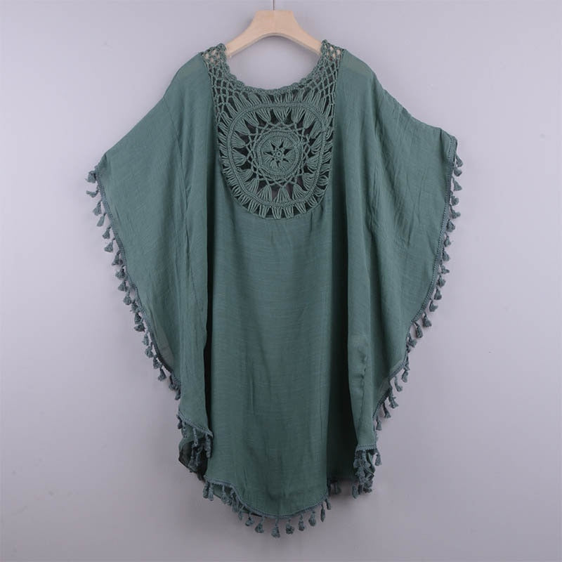 This airy beach tunic is the essence of summer and freedom. The signature openwork neckline draws attention and gives the outfit a unique look, while the loose fit ensures comfort and lightness. Perfect for layering over your swimwear, it also makes a great casual dress for summer days. Available in a variety of colors, so every woman can find the perfect shade to enhance her vacation look. Whether you're heading to the beach or enjoying lunch on the waterfront, this tunic is a versatile addition to your summer wardrobe.