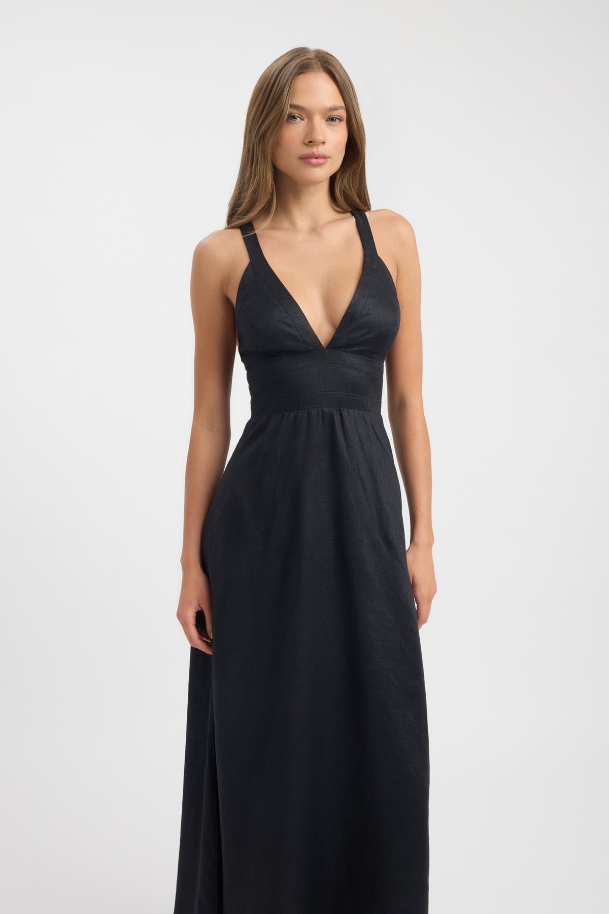 Women's Maxi Dress V-Neck Adjustable Straps Fitted Linen Elegant