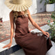 The Syvella Dress is a timeless maxi dress with a soft, feminine feel. The sleeveless design with semi-wide straps and a square neckline creates a refined and balanced look. The A-line skirt falls smoothly to a maxi length, creating a flattering silhouette suitable for both casual and more formal occasions.