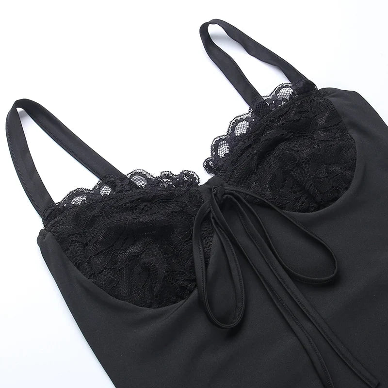Women's tight mini dress with spaghetti straps and lace trim
