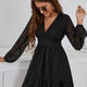 This stylish dress is a perfect combination of romance and modern design. Featuring long, sheer sleeves and decorative ruffles, it's an ideal choice for the woman who appreciates both class and unique details. Delicate pleats and the subtle texture of the fabric give the dress a light and feminine feel. The airy cut makes it exceptionally comfortable to wear, and the accentuated waist beautifully flatters the figure. The dress is perfect for a variety of events, from elegant receptions to casual get-togethers with friends. Paired with the right accessories, it creates a truly striking outfit.