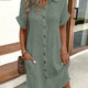 We present a stylish and comfortable women's linen shirt dress, ideal for summer days and casual outings. The dress has a relaxed fit, short sleeves, and a classic collar, giving it a versatile and elegant look. With full-length buttons, it offers comfort and ease of dressing. Two practical pockets add functionality and a relaxed feel. Made of high-quality linen, the dress is lightweight and breathable, ensuring all-day comfort. It pairs perfectly with summer accessories for a fashionable and casual look.