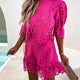 Discover Daleyza , the two-piece set that will give your wardrobe a stylish upgrade. With a high round neck top and elegant puff sleeves, and high-waisted shorts with playful ruffles, you'll effortlessly radiate summer vibes. Perfect for sunny days, a party, or a day out in the city.
