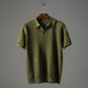 This men's polo features a patterned collar, a V-neck, and short sleeves. It's designed for casual wear during warm weather. The construction offers plenty of freedom of movement.