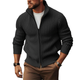 Men's Ribbed Zip-Up Cardigan with Stand Collar and Fitted Silhouette