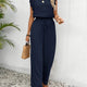 Deze dames mouwloze jumpsuit mengt ontspannen charme met een flatterende silhouet. Ontworpen met delicate kantafgewerkte schouders en een flexibele tailleband met touwtjes, biedt het zowel elegantie als comfort. Perfect voor brunch, boodschappen of casual uitjes, deze look gaat moeiteloos van dag naar nacht.