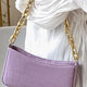 Make a style statement with this purple handbag featuring a striking gold crocodile print. This bag combines color, texture, and shine in one luxurious accessory that elevates any look.