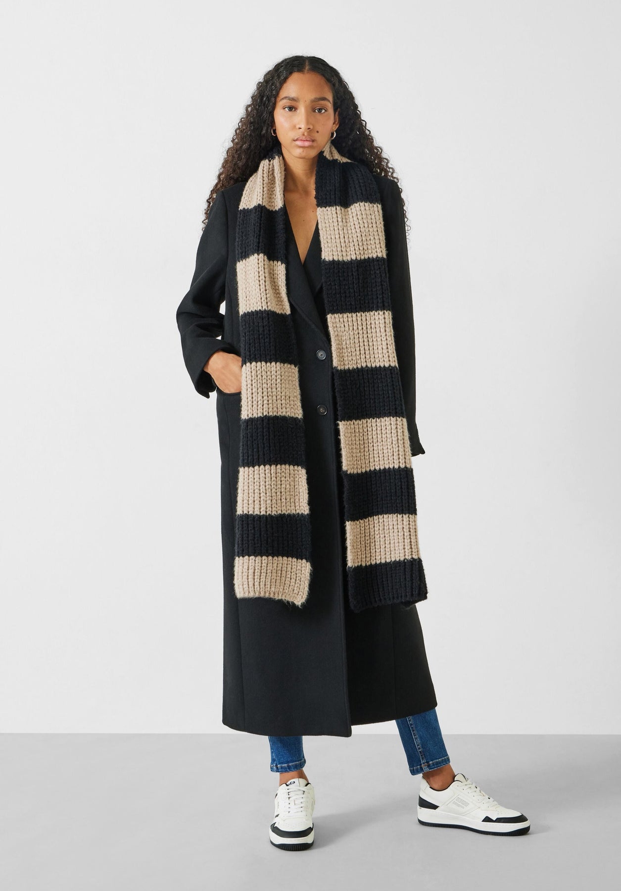 This scarf is designed to complement a variety of outfits throughout the season. Its size makes it easy to wrap around the neck for added comfort in everyday life. It complements a variety of clothing styles and situations.