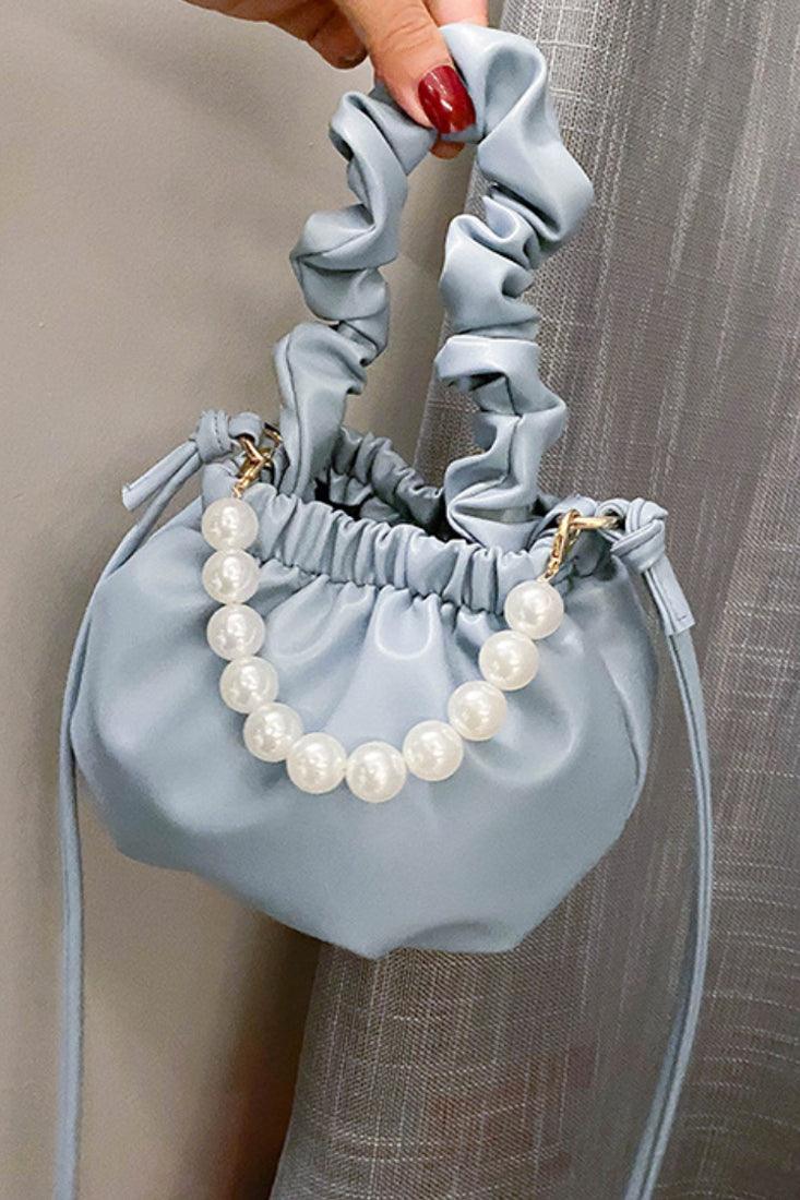 Blue and White Faux Pearl Crinkled Mini Shoulder Bag/Handbag