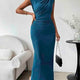 An elegant maxi dress, perfect for evenings out, festive occasions, and formal gatherings. The dress features modern, asymmetrical draping that accentuates the figure and creates a unique look. Made of soft, stretchy materials, it offers comfort and an excellent fit. Its simple yet striking design makes it the ideal choice for any elegant occasion.