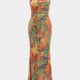 Tie Dye Print Ruched Tie Front Zipper Slip Maxi Dress