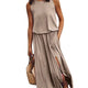 Complete your summer look with this beautiful sleeveless maxi dress, offering both comfort and style. Perfect for warm days, the loose fit not only allows for freedom of movement but also keeps you cool thanks to the breathable material. The dress features an elegant round neckline and a layered top that drapes subtly, adding a touch of sophistication. With a high slit at the leg, this creation is both practical and sexy, making it effortless to wear for both everyday wear and special occasions. Available in a wide range of colors, from subtle pastels to deep, saturated shades, this dress is the ideal choice for any woman looking to add a touch of elegance to her wardrobe. Lightweight and comfortable, it will become your favorite summer outfit.