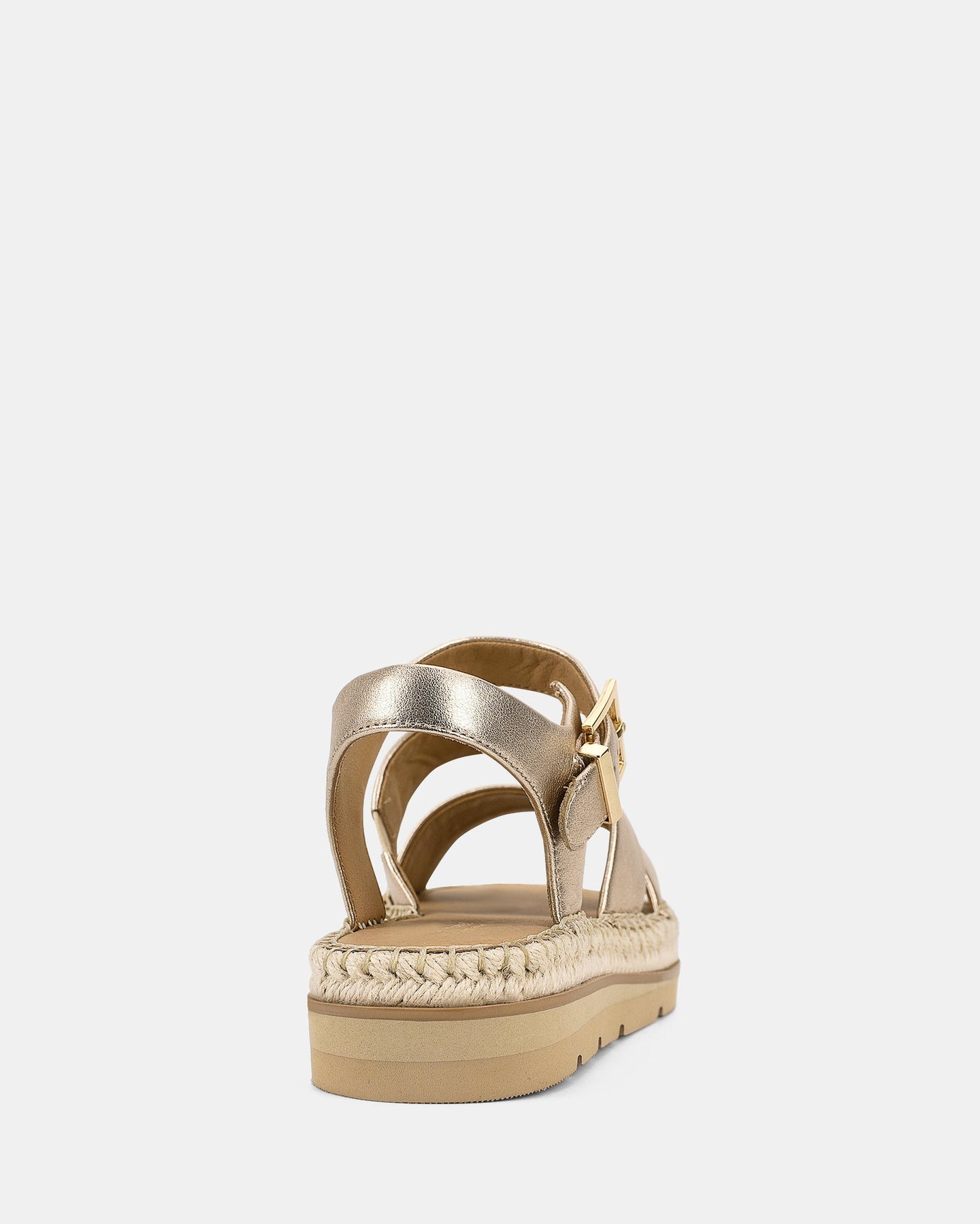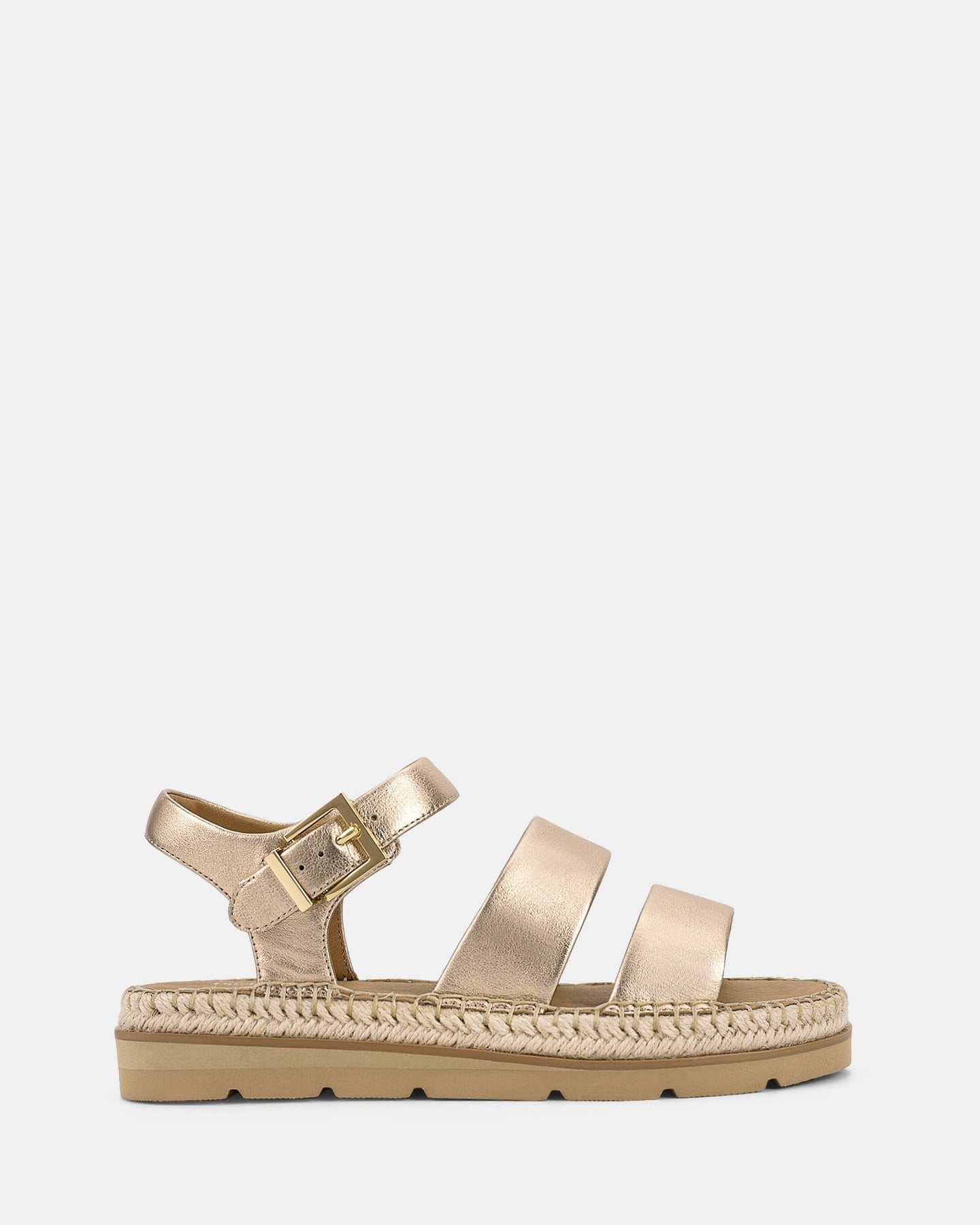 Dames | Sandaal | Weef Zacht Goud | Verstelbare Gesp | Comfortabel | Elegant