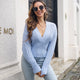 Openwork Surplice Knitted Sweater | Ribbed V-Neck Sweater | Chic & Casual Long Sleeves
