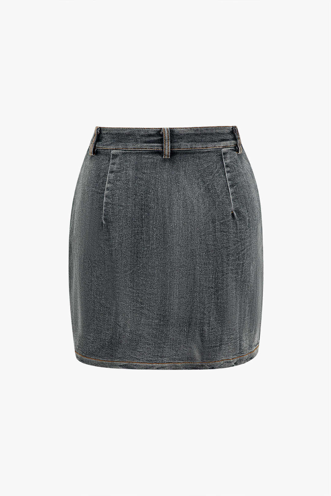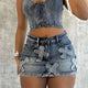 Denim Halter Top with Bow Detail and Mini Skirt Set