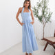 Onze Phebe jurk combineert verfijnde lijnen met casual charme. De klassieke streepprint en halterhals geven een elegante uitstraling, terwijl de A-lijn rok en maxi lengte zorgen voor een vloeiende, comfortabele pasvorm. Perfect voor zonnige dagen of een ontspannen uitstapje.