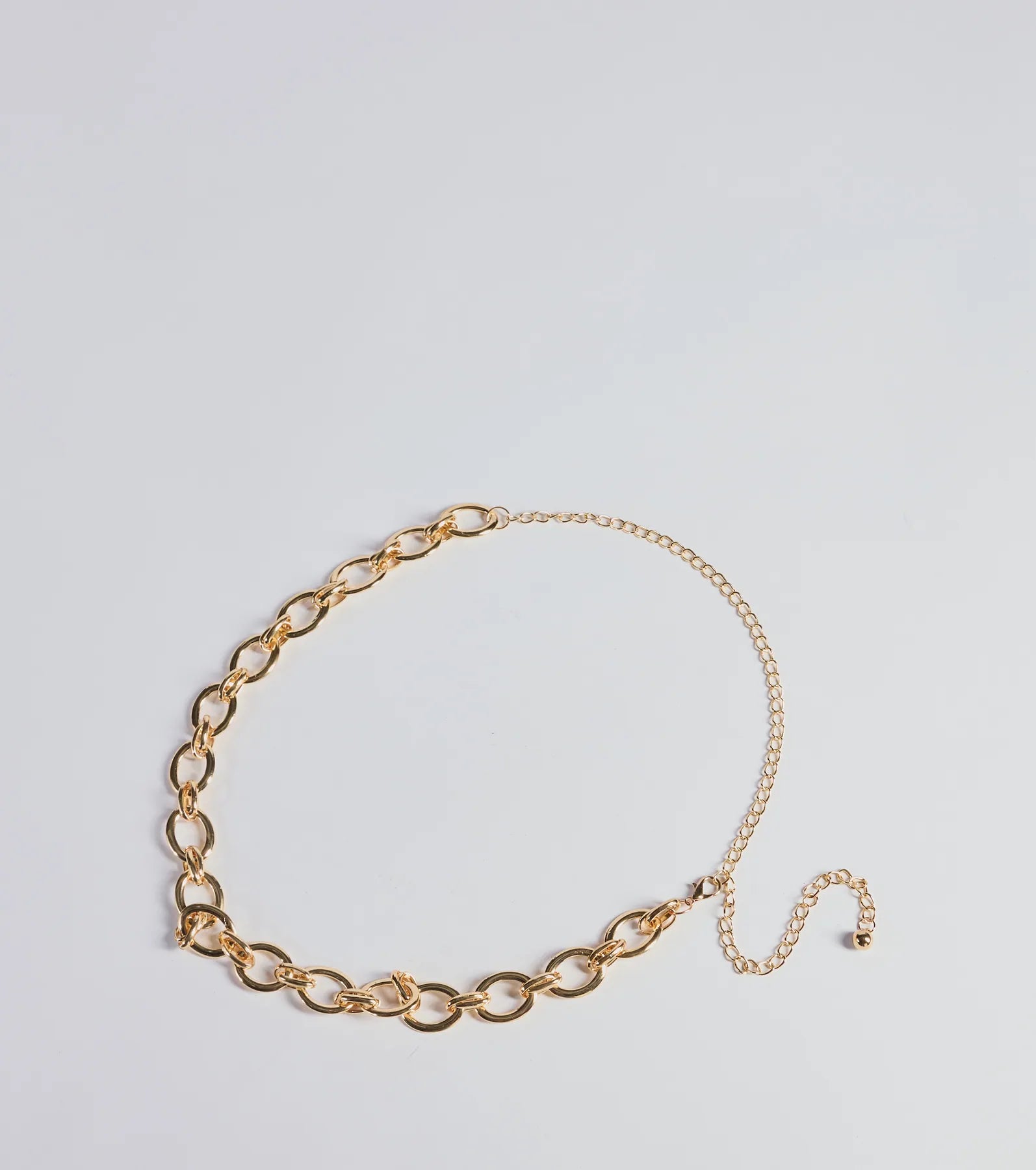 Bring an edgy vibe to your look with this chunky chain-link metal belt, perfect for pairing with high-waisted trousers.