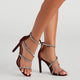 Rhinestone-embellished straps wrap around your feet on these stiletto heels, perfect for a semi-formal or chic occasion! They feature a square toe, a closed ankle, and a back zipper, crafted from faux suede and leather. Complete the look with a glam clutch .