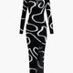 Line Pattern Cut Out Slit Wide Maxi Dress